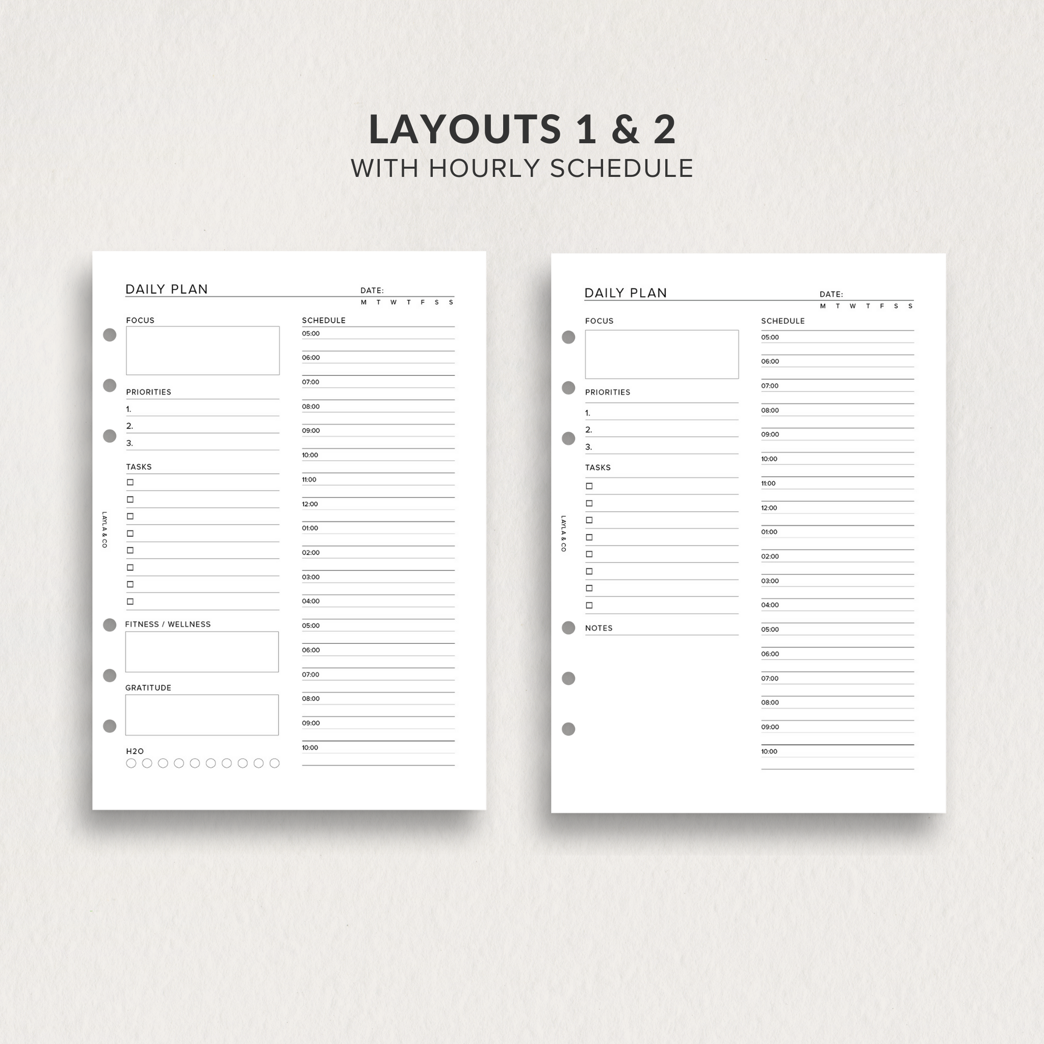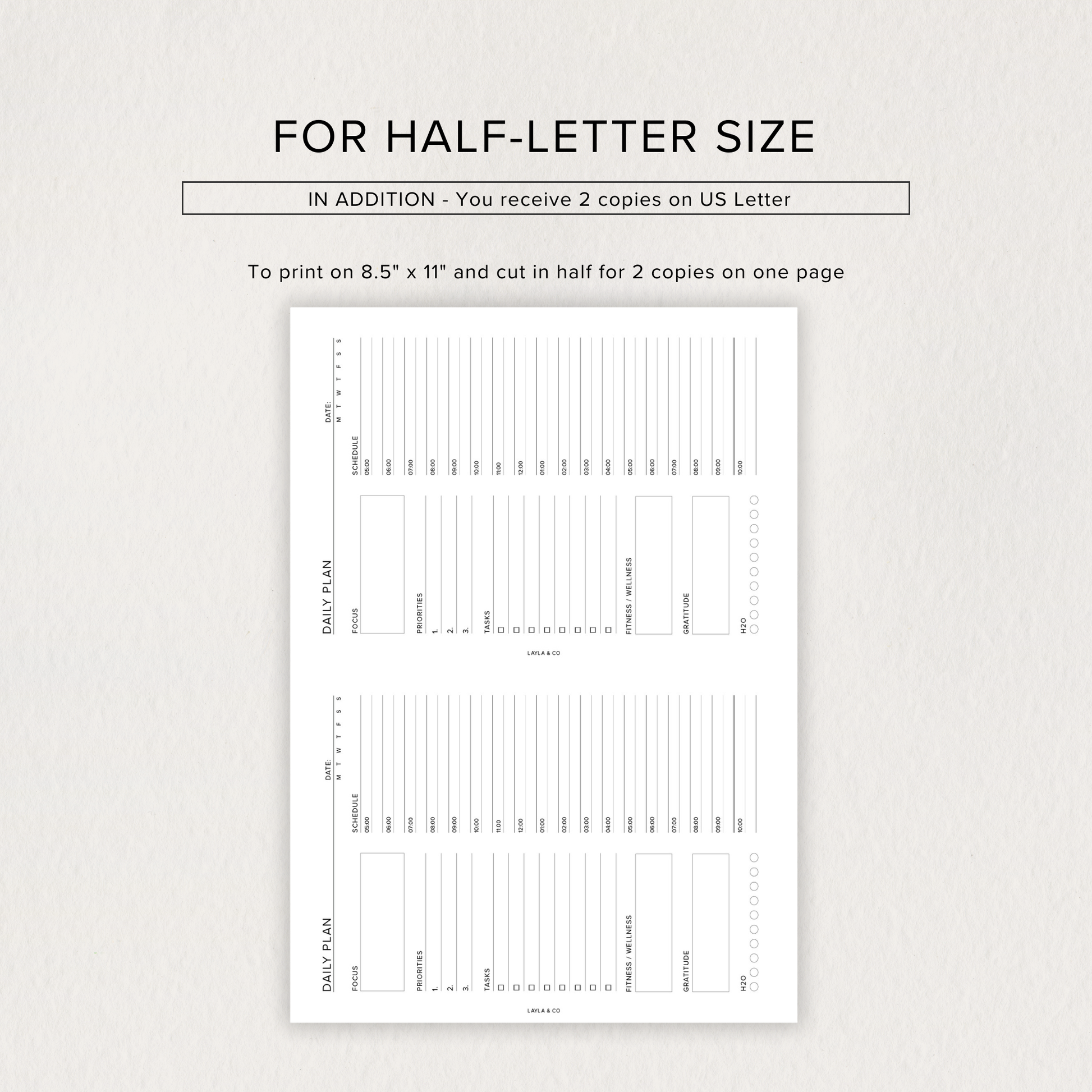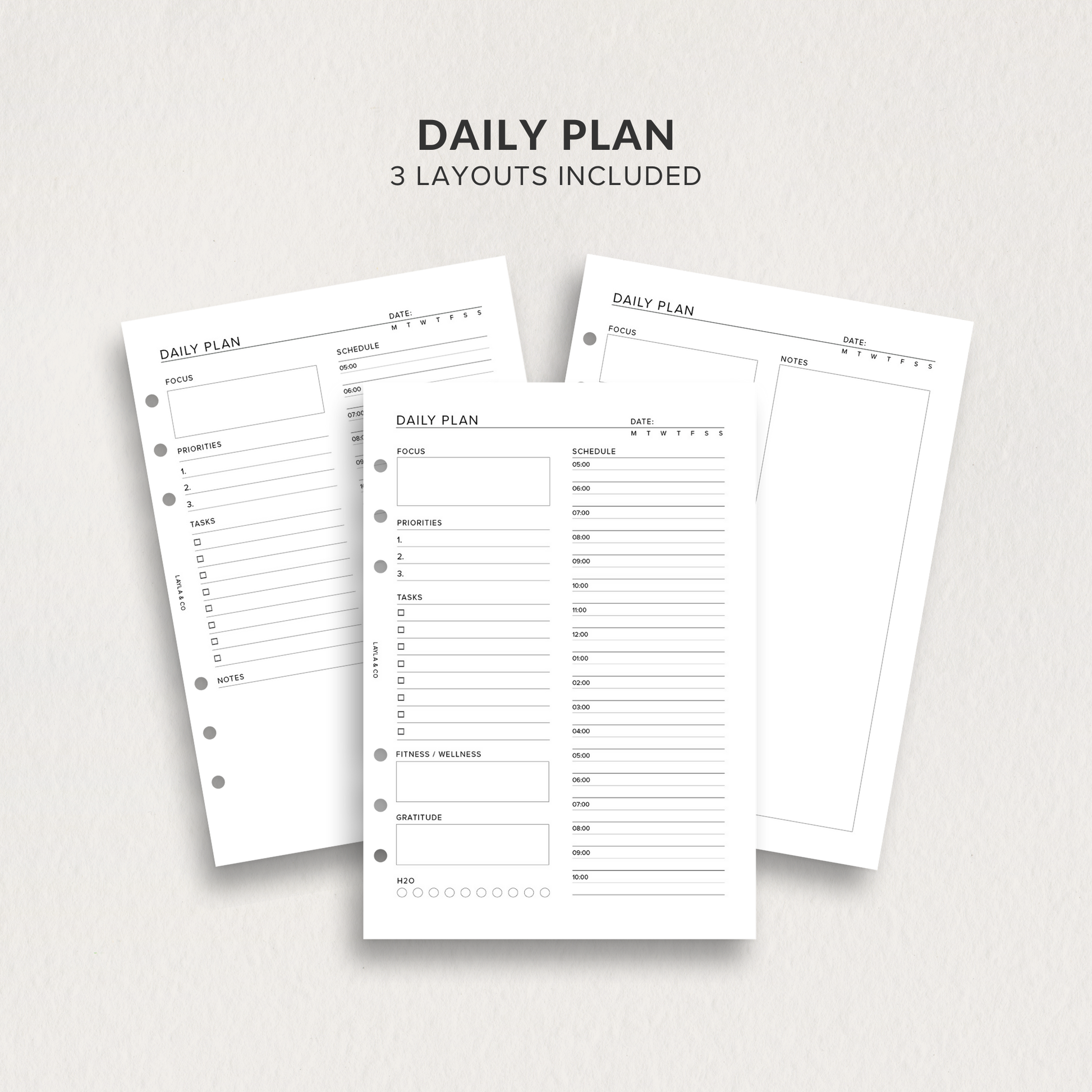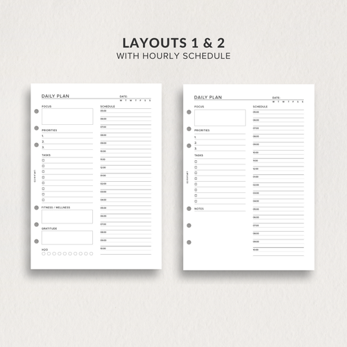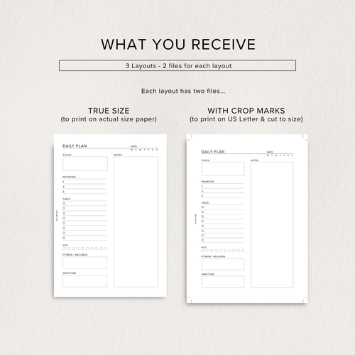 When you select your size, you’ll receive 3 unique daily plan layouts, each with multiple print-ready options for ease and flexibility.