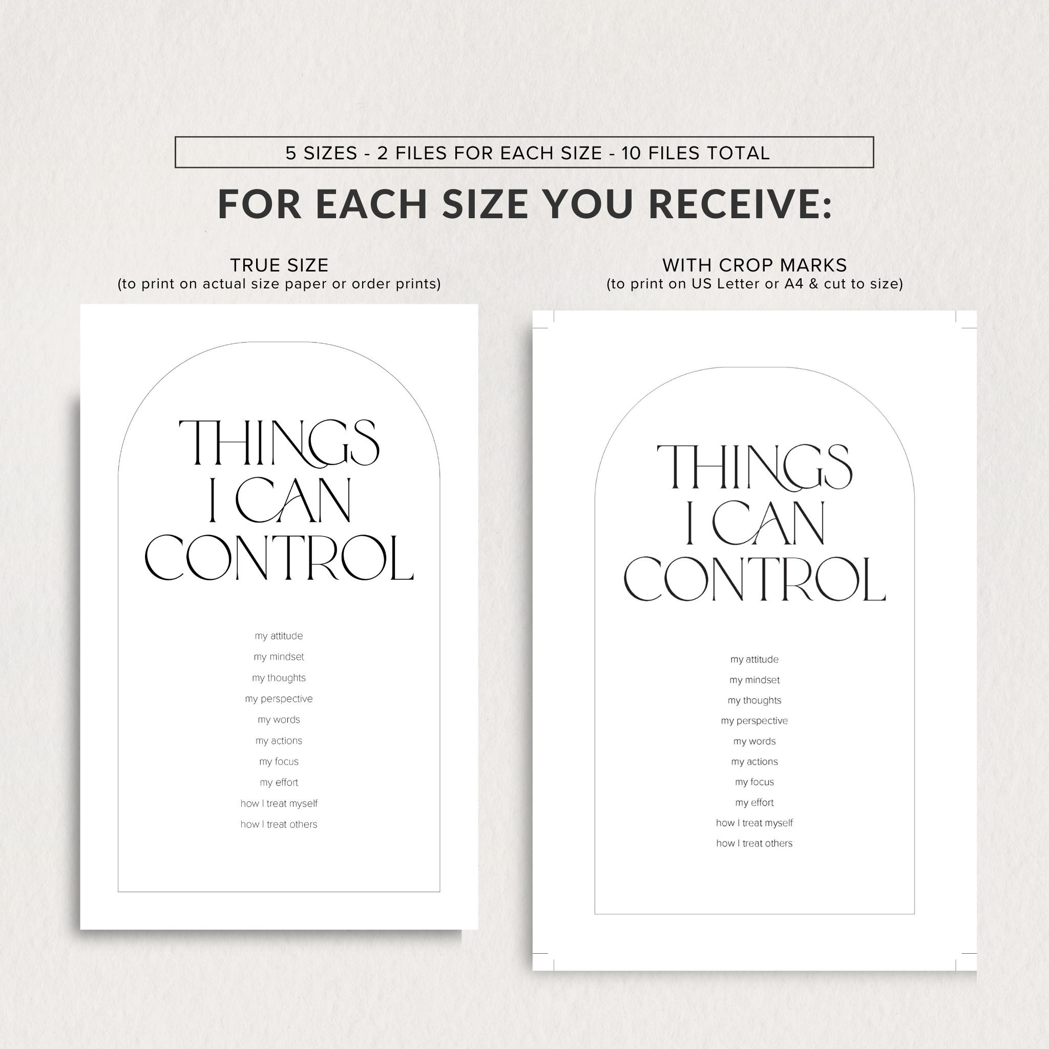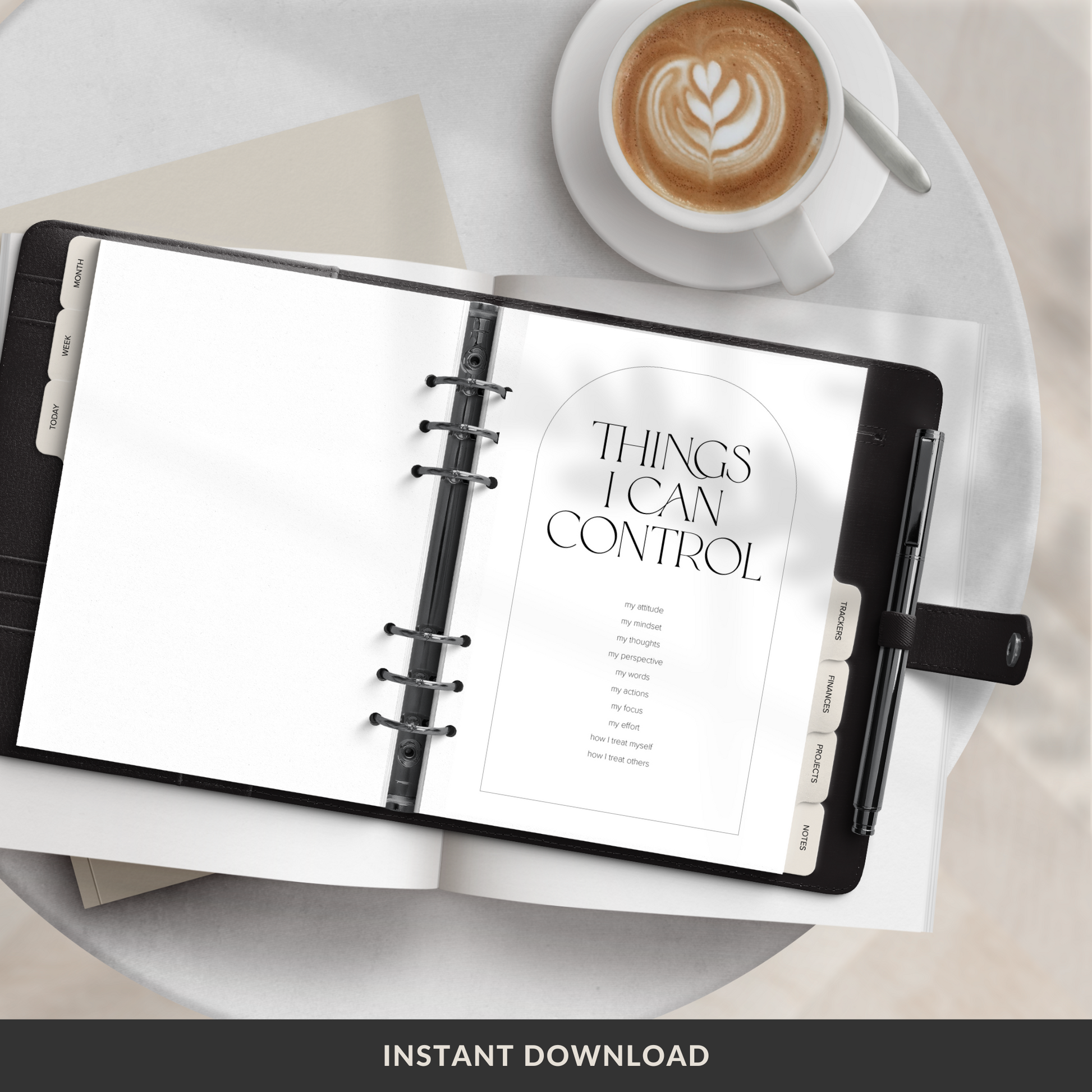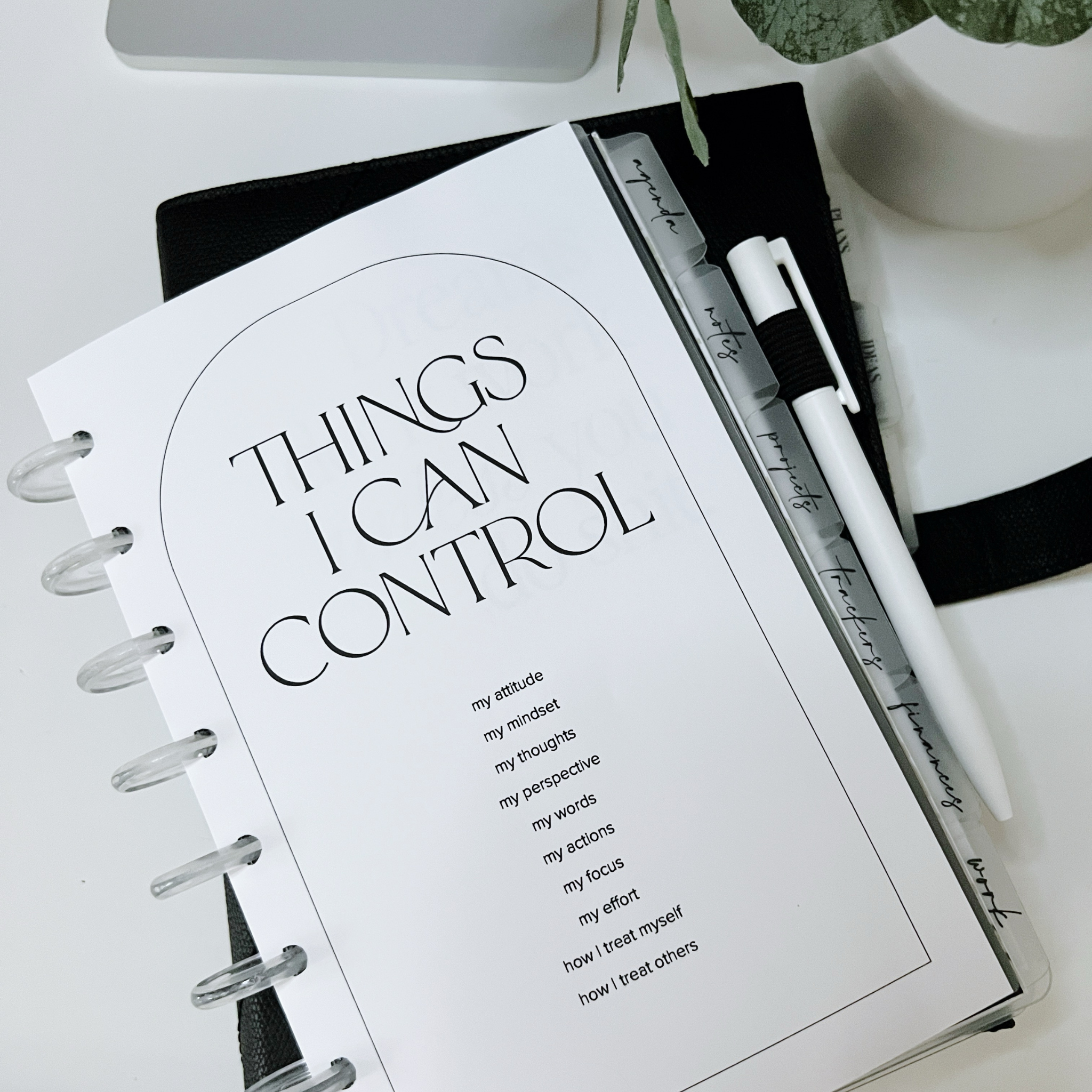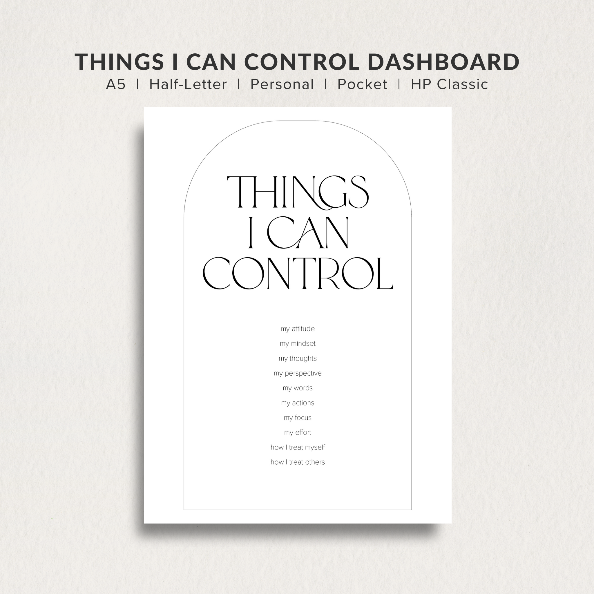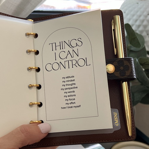 An aesthetic printable planner dashboard to use in your planner as a reminder of the things we can control in our life. Easy to print and use as planner inserts (dashboard sizes include A5, Half-letter, HP Classic, Personal & Pocket).