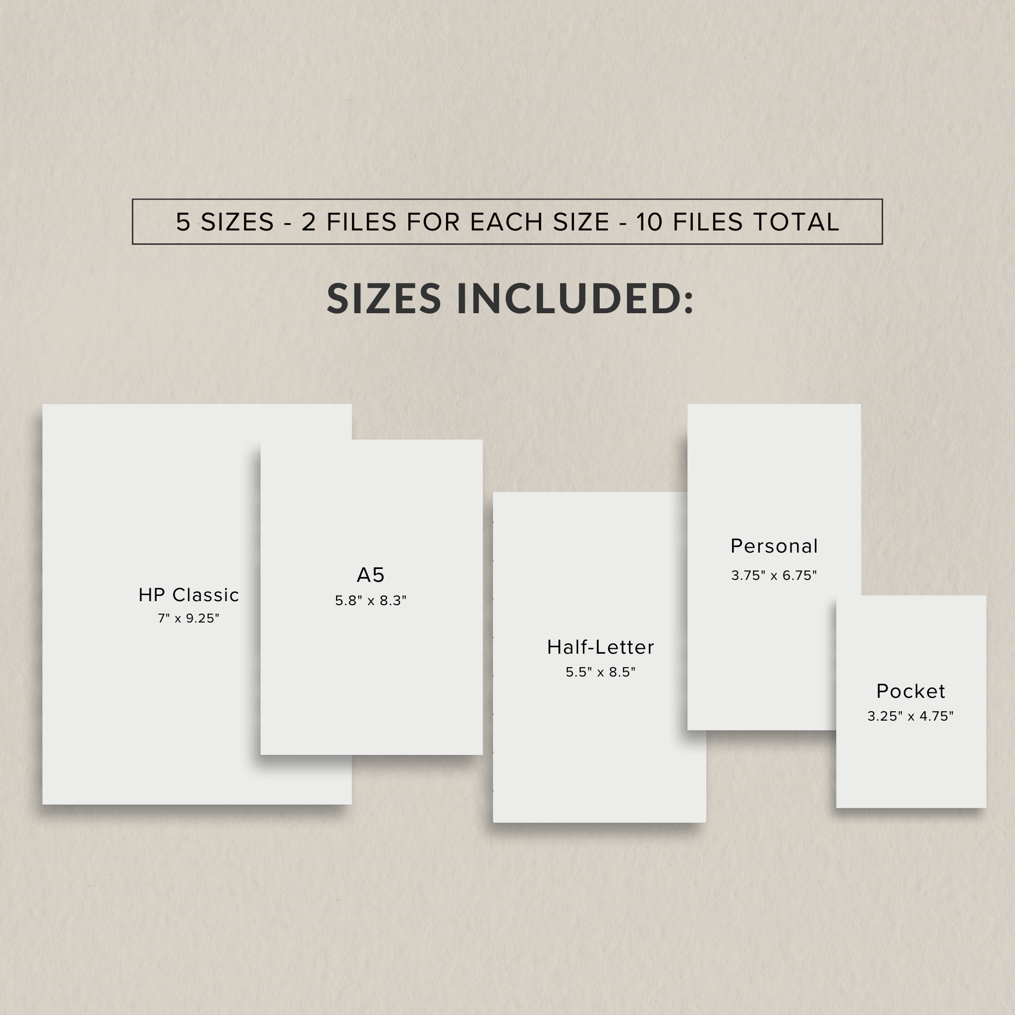 You will receive an instant download of the dashboard that includes 9 PDF files of various sizes. Please note, files are not editable. See below for file and size details.