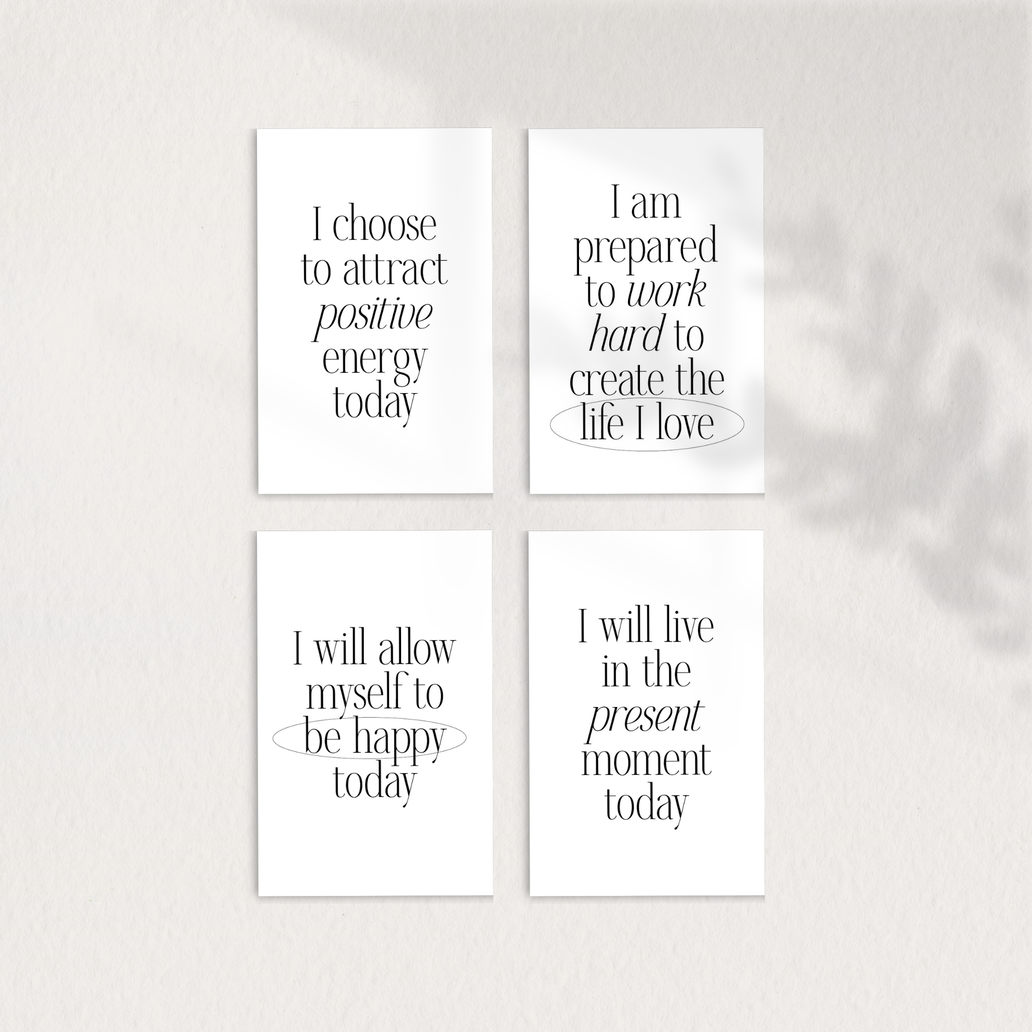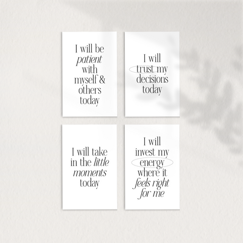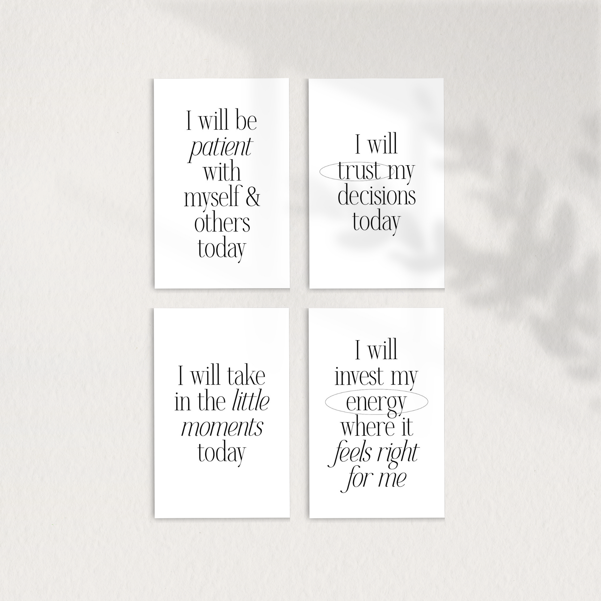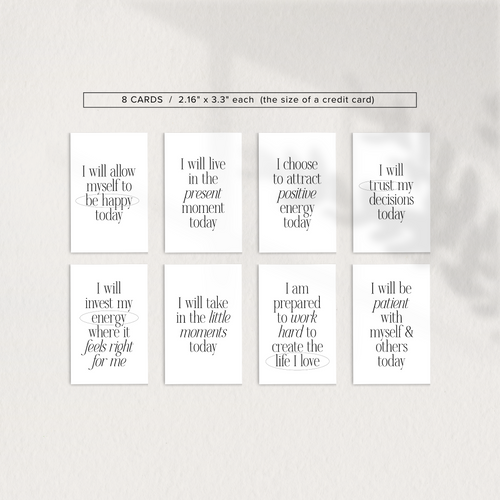 Printable, modern planner pocket cards to inspire you and help you set your daily intention! Instantly and easily download, print and cut to size. Insert into business card/credit card pockets or attached to your planner pages and dashboard as you wish!