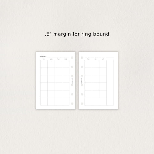 An undated monthly planning page in a compact, minimalist format - designed to help you see the shape of your month without filling every space.