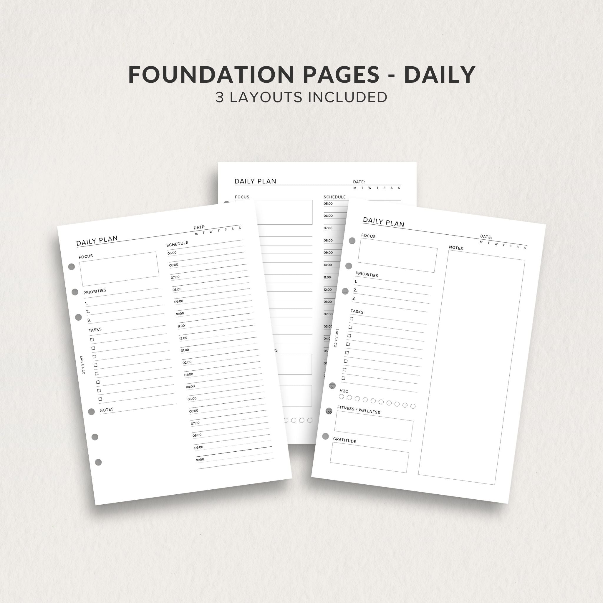 The Daily Plan Insert is part of the Layla & Co Foundation Pages Collection - a thoughtfully designed set of essential planning pages created to support your daily rhythm without overwhelm.