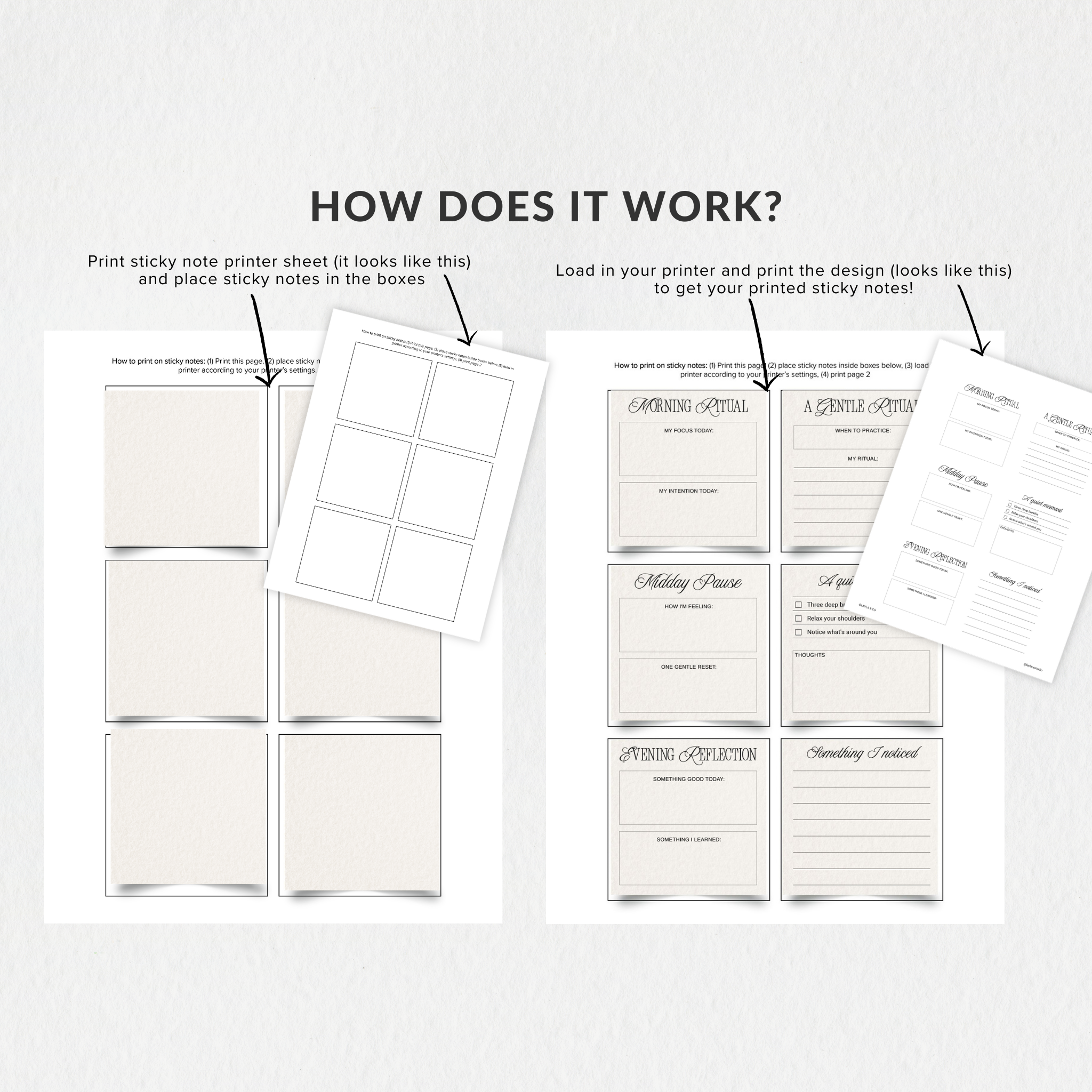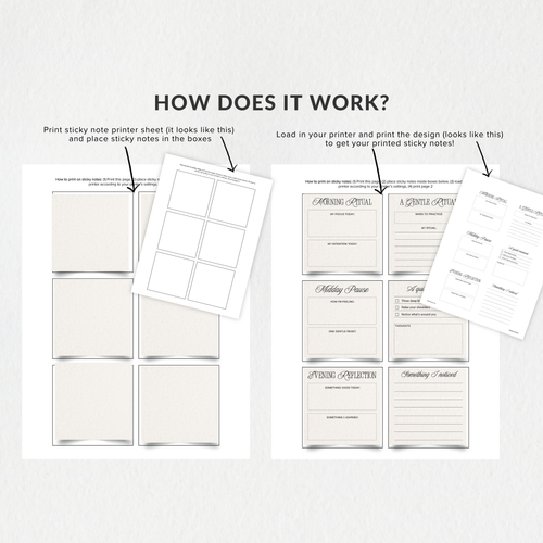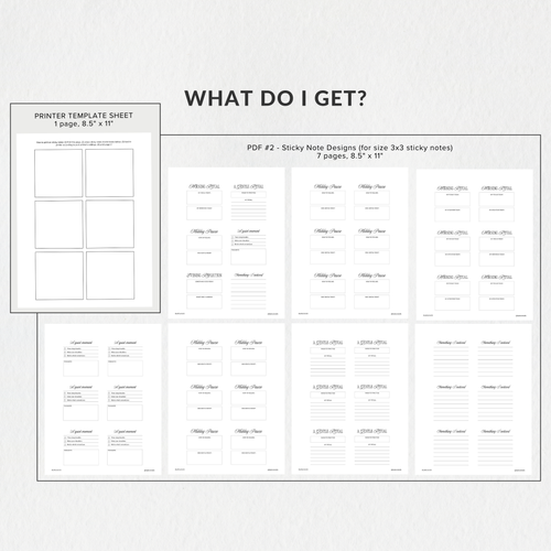 Instantly download the files and print them on any standard 3" × 3" sticky notes using your home printer. Simple to use, flexible, and designed to layer beautifully into your planner, journal, or workspace.